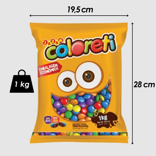 A embalagem contém 1kg de confeitos. A quantidade pode variar conforme o tamanho das pastilhas.