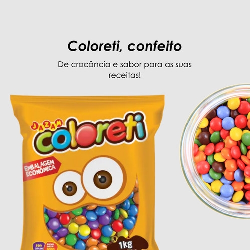 O Coloreti Jazam 1kg é o confeito ideal para quem busca qualidade, economia e apelo visual em doces e decorações. Com casquinha crocante por fora e recheio macio por dentro, entrega uma experiência de sabor marcante que agrada crianças e adultos.