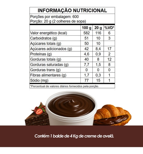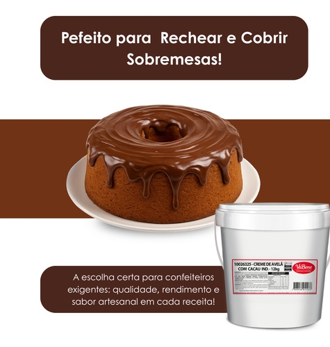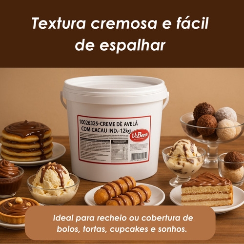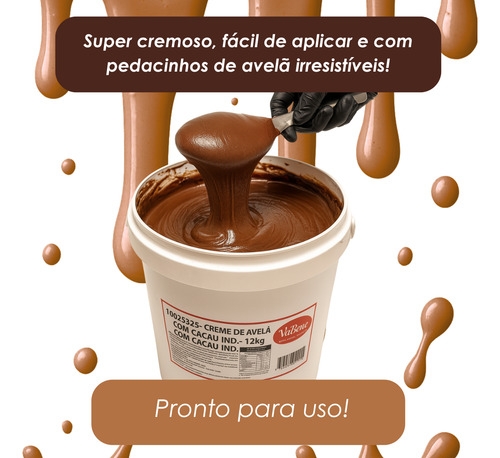 Creme de avelã profissional de alta performance para confeitaria, padarias, restaurantes e food service. Embalagem de 12kg com rendimento elevado, textura cremosa e sabor equilibrado de avelã com cacau, ideal para produções em larga escala e aplicações industriais.