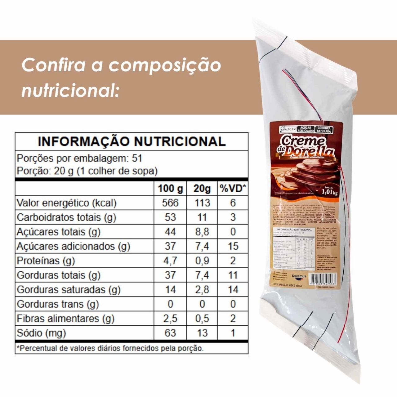 Creme de Dorella Recheio de Avelã com Cacau 1,01 kg –Doremus