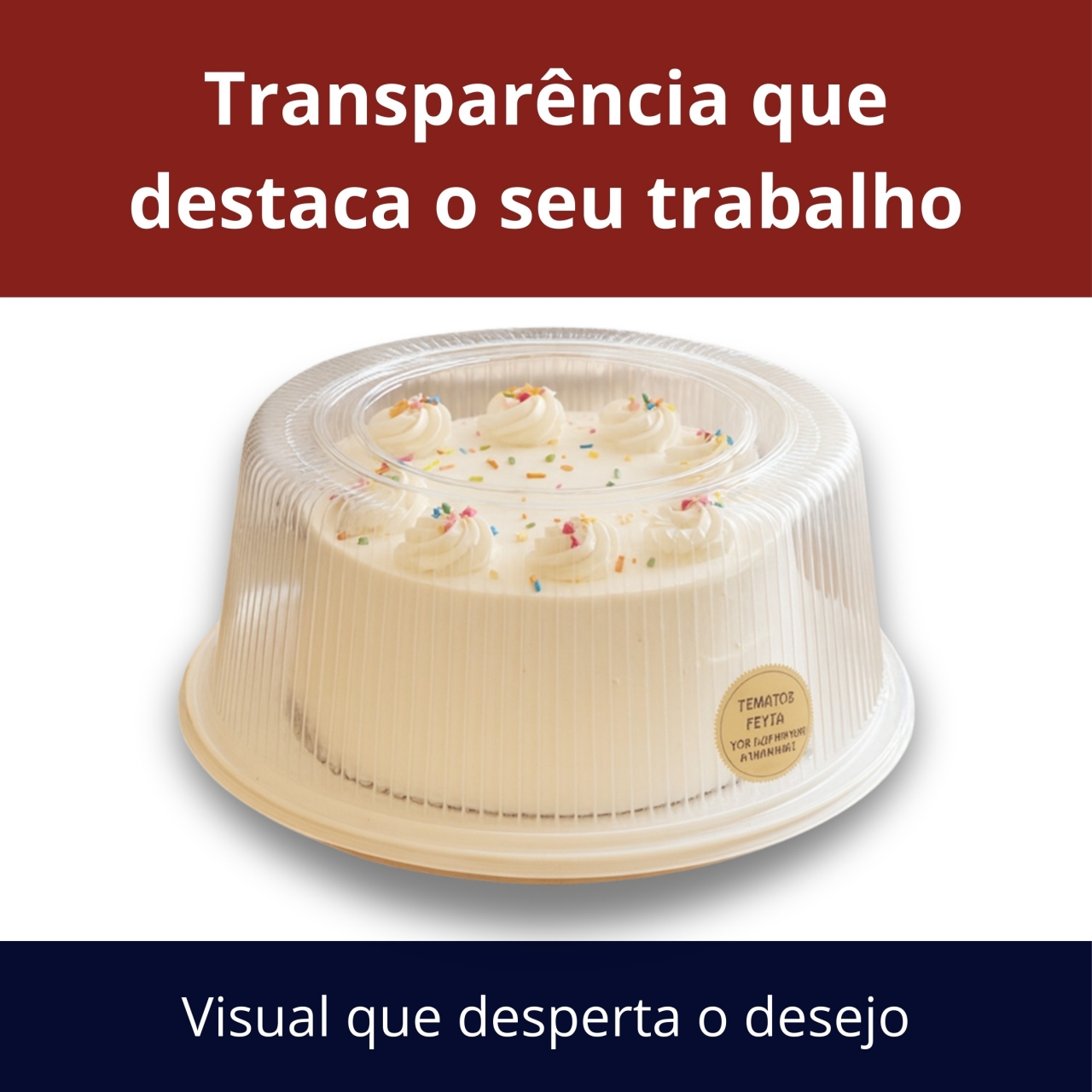 Embalagem desenvolvida para acomodar bolos e sobremesas com segurança, oferecendo excelente apresentação e proteção durante o transporte e a exposição.