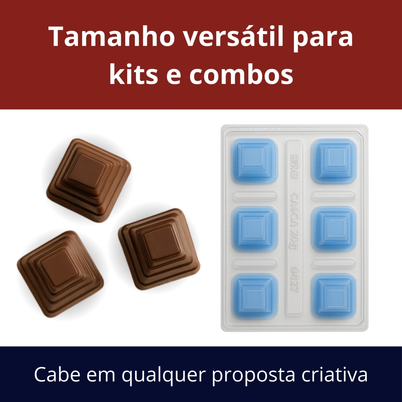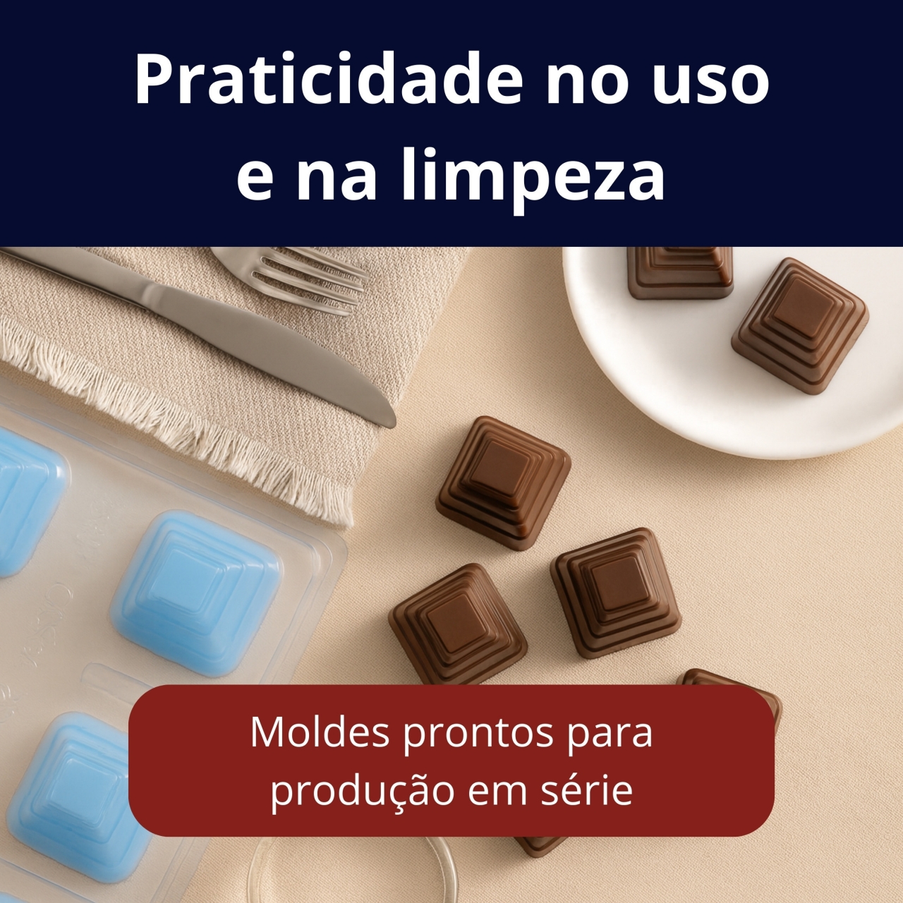 Lave a forma antes do primeiro uso. Posicione corretamente o silicone entre as placas de acetato. Preencha as cavidades com chocolate ou sobremesa conforme a receita. Aguarde resfriamento ou gelificação antes de desenformar.