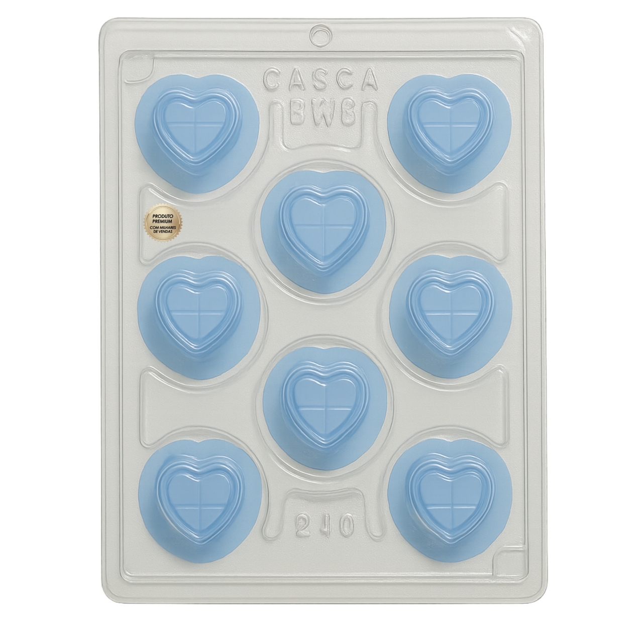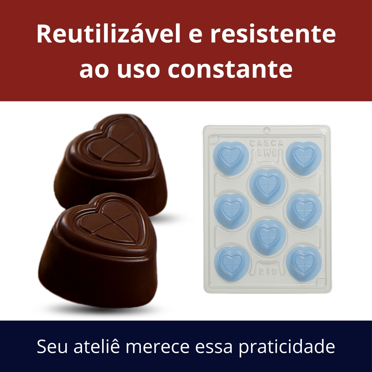forma de acetato com silicone coração, molde para bombons bwb ref 240, forma para trufas profissionais, molde reutilizável para chocolate, forma bwb coração para confeitaria, forma rígida com silicone removível, molde para doces em formato coração
