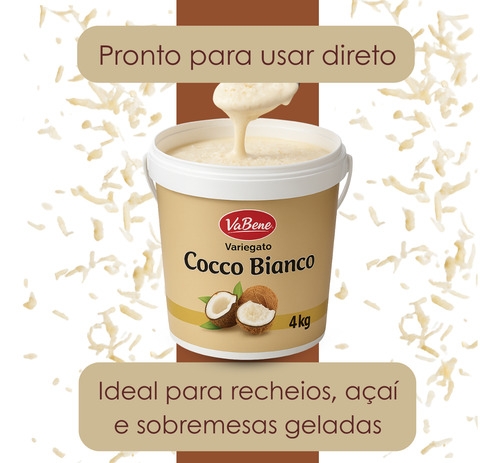 variegato coco branco cocco bianco va bene 4kg recheio cremoso de coco creme sabor coco branco pasta para sobremesas base de coco para gelato artesanal cobertura de coco para sorvete recheio pronto para bolo va bene coco cremoso para confeitaria pasta cocco bianco gourmet cobertura para taça gelada