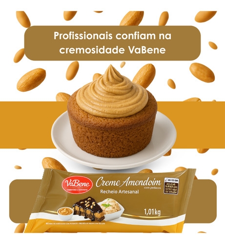 Recheio artesanal com pedaços crocantes de amendoim, textura cremosa e sabor autêntico: o Creme de Amendoim VaBene é ideal para confeitarias e sobremesas gourmet. Pronto para uso direto, com alto rendimento e embalagem prática de 1,01 kg.