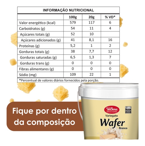 3- O sabor é de chocolate branco? Não. É um creme com sabor característico de wafer branco, leve e adocicado.