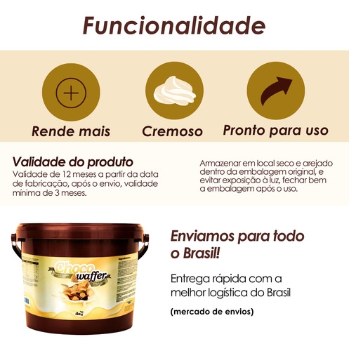 - Seja com manga de confeitar, espátula ou colher, o Choco Waffer oferece rendimento e padronização para fidelizar seus clientes.