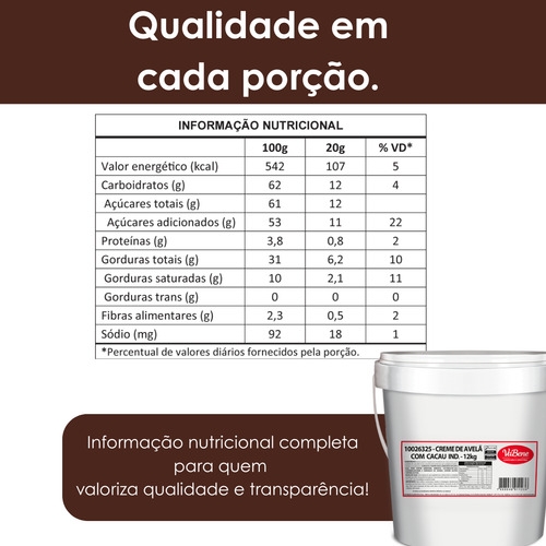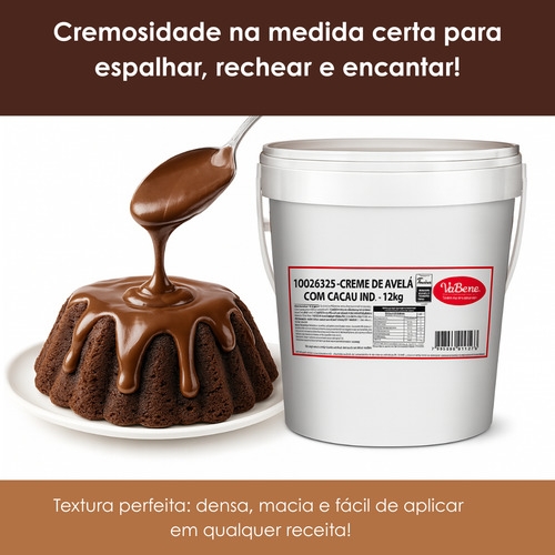 Creme de avelã profissional de alta performance para confeitaria, padarias, restaurantes e food service. Embalagem de 12kg com rendimento elevado, textura cremosa e sabor equilibrado de avelã com cacau, ideal para produções em larga escala e aplicações industriais.