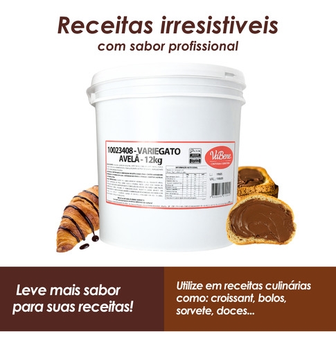 creme de avelã profissional vabene 12kg creme de avelã industrial confeitaria food service insumos atacado creme de avelã com cacau uso profissional padarias restaurantes confeitaria industrial variegato