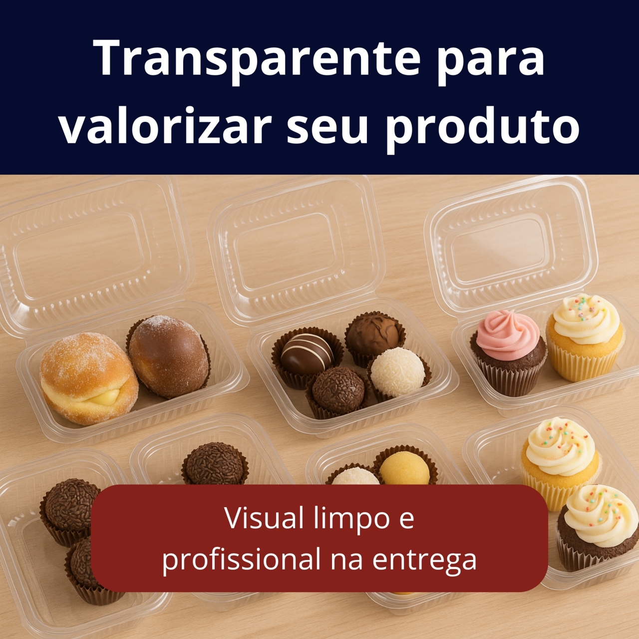 EMBALAGEM PLÁSTICA COM TAMPA BWB TRANSPARENTE - KIT 50 UNIDADES