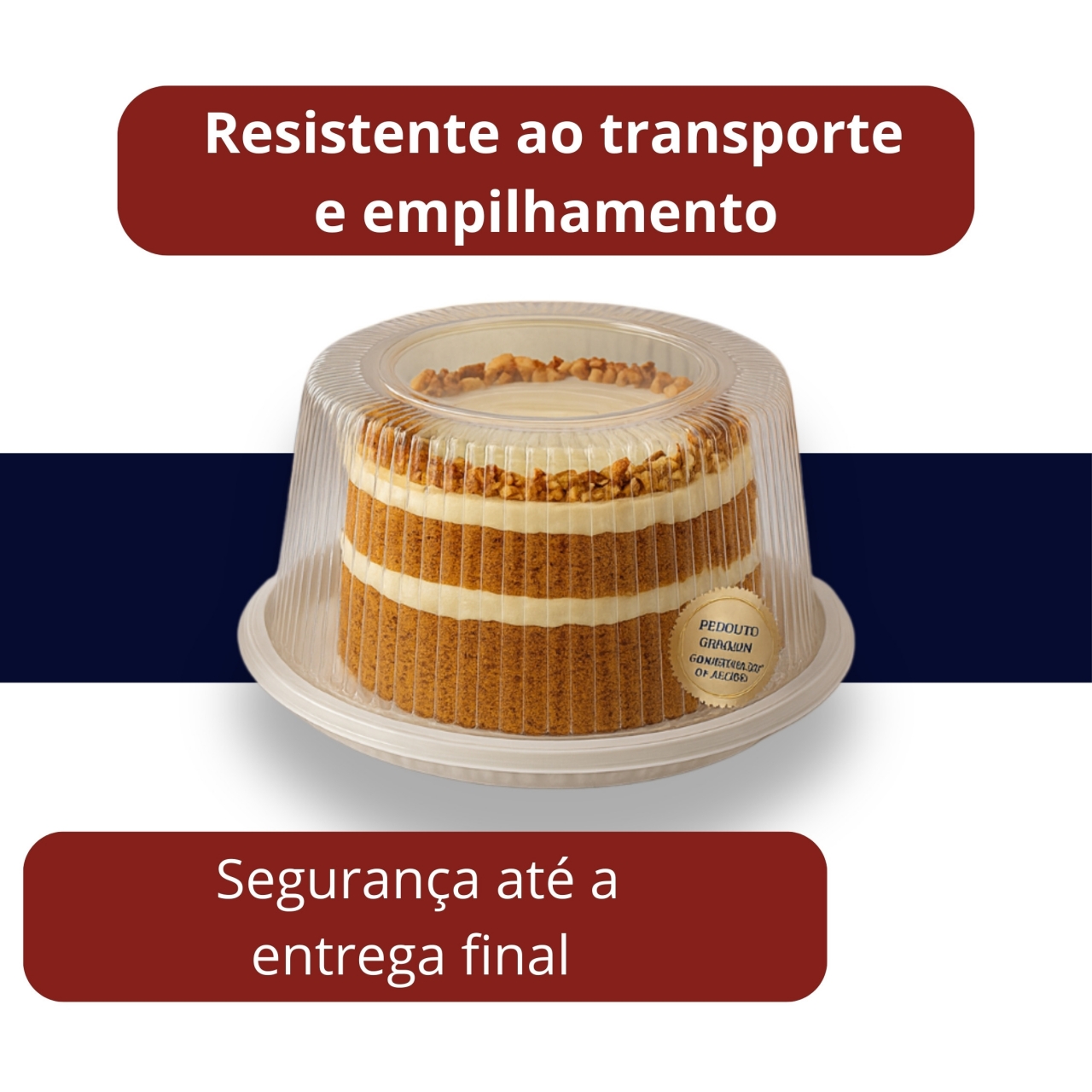 Embalagem desenvolvida para acomodar bolos e sobremesas com segurança, oferecendo excelente apresentação e proteção durante o transporte e a exposição.