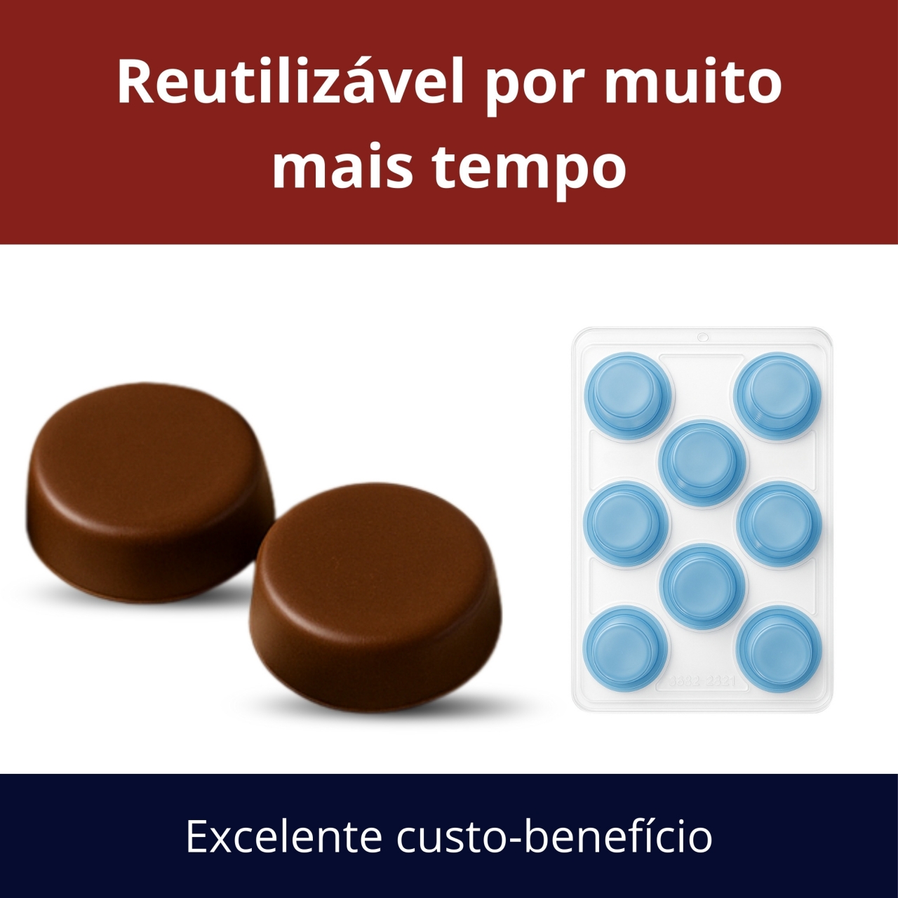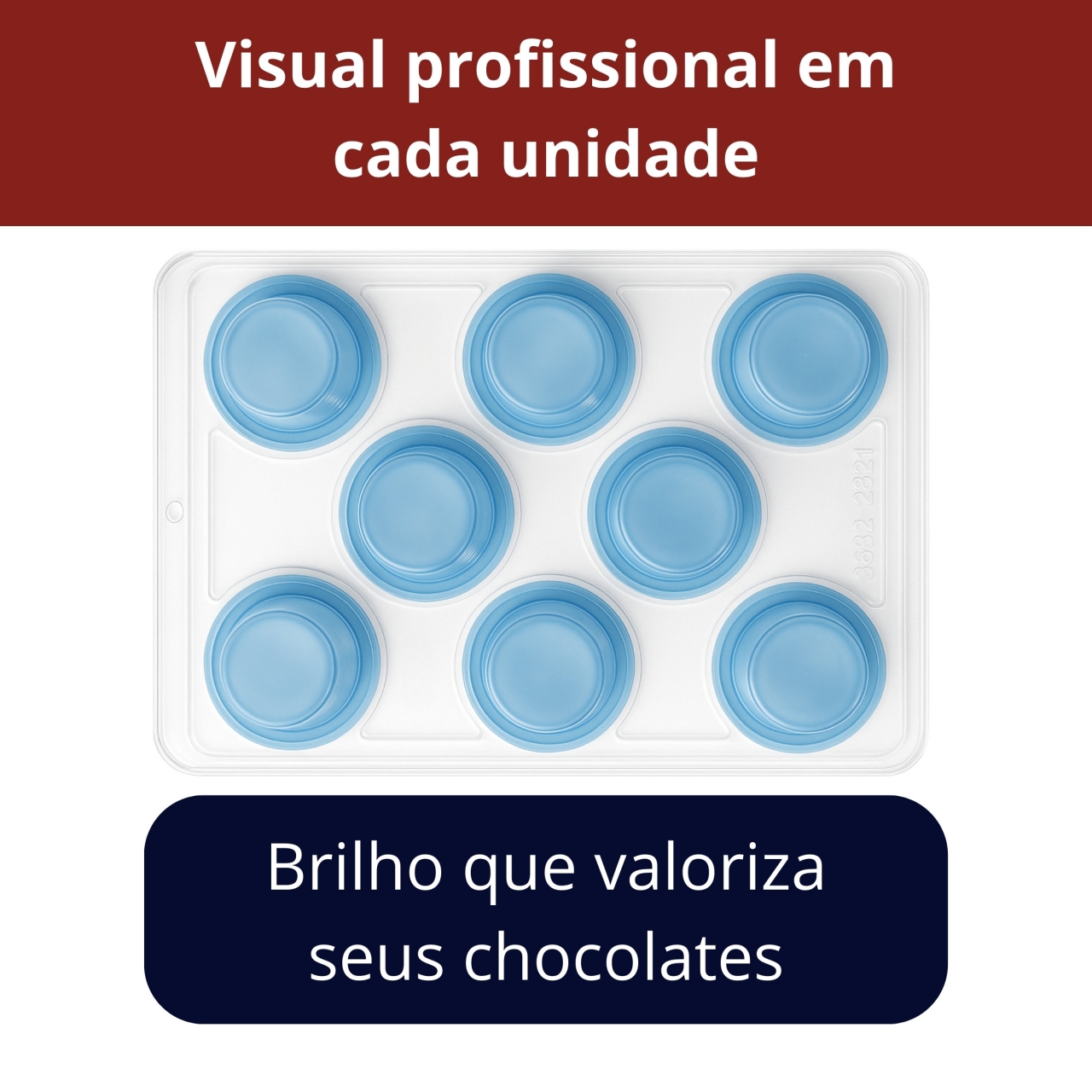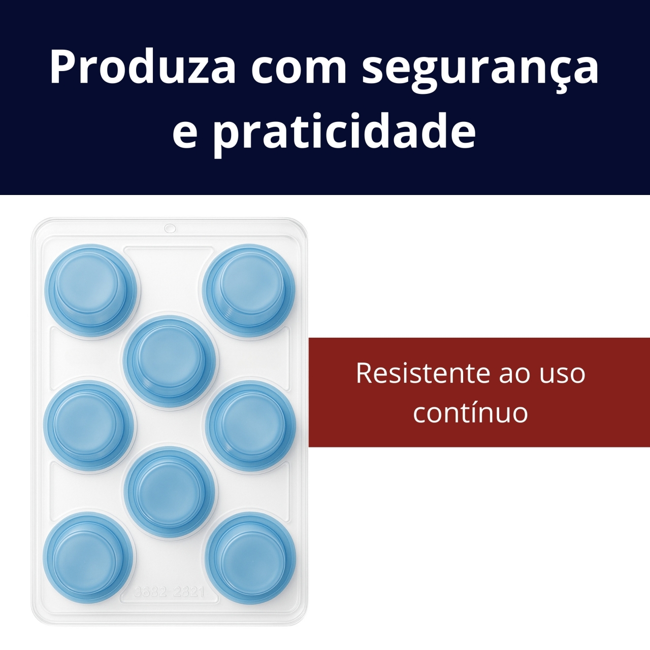 Lave a forma antes do primeiro uso. Posicione o silicone corretamente entre as placas de acetato. Preencha as cavidades com chocolate ou massa conforme a receita. Aguarde a secagem ou resfriamento completo antes de desenformar.