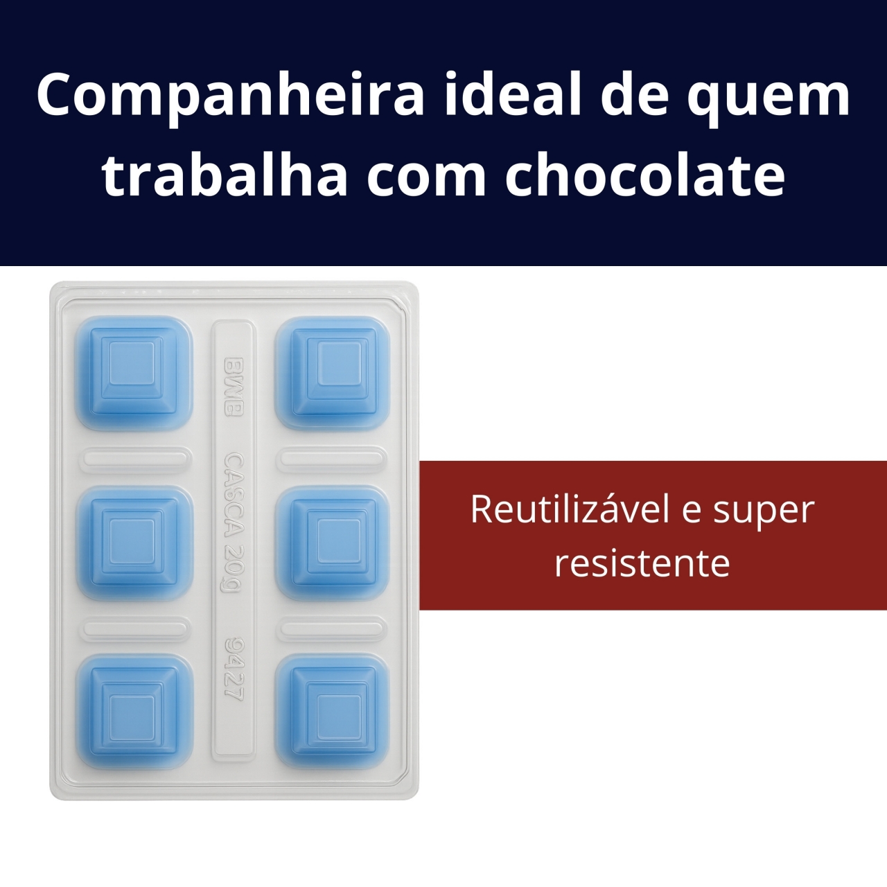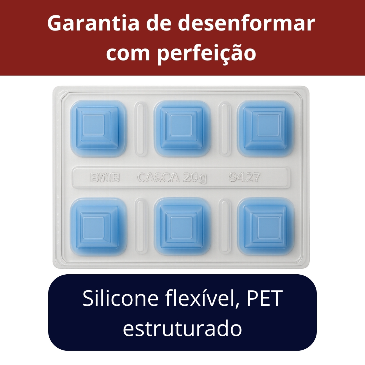 Lave a forma antes do primeiro uso. Posicione corretamente o silicone entre as placas de acetato. Preencha as cavidades com chocolate ou sobremesa conforme a receita. Aguarde resfriamento ou gelificação antes de desenformar.