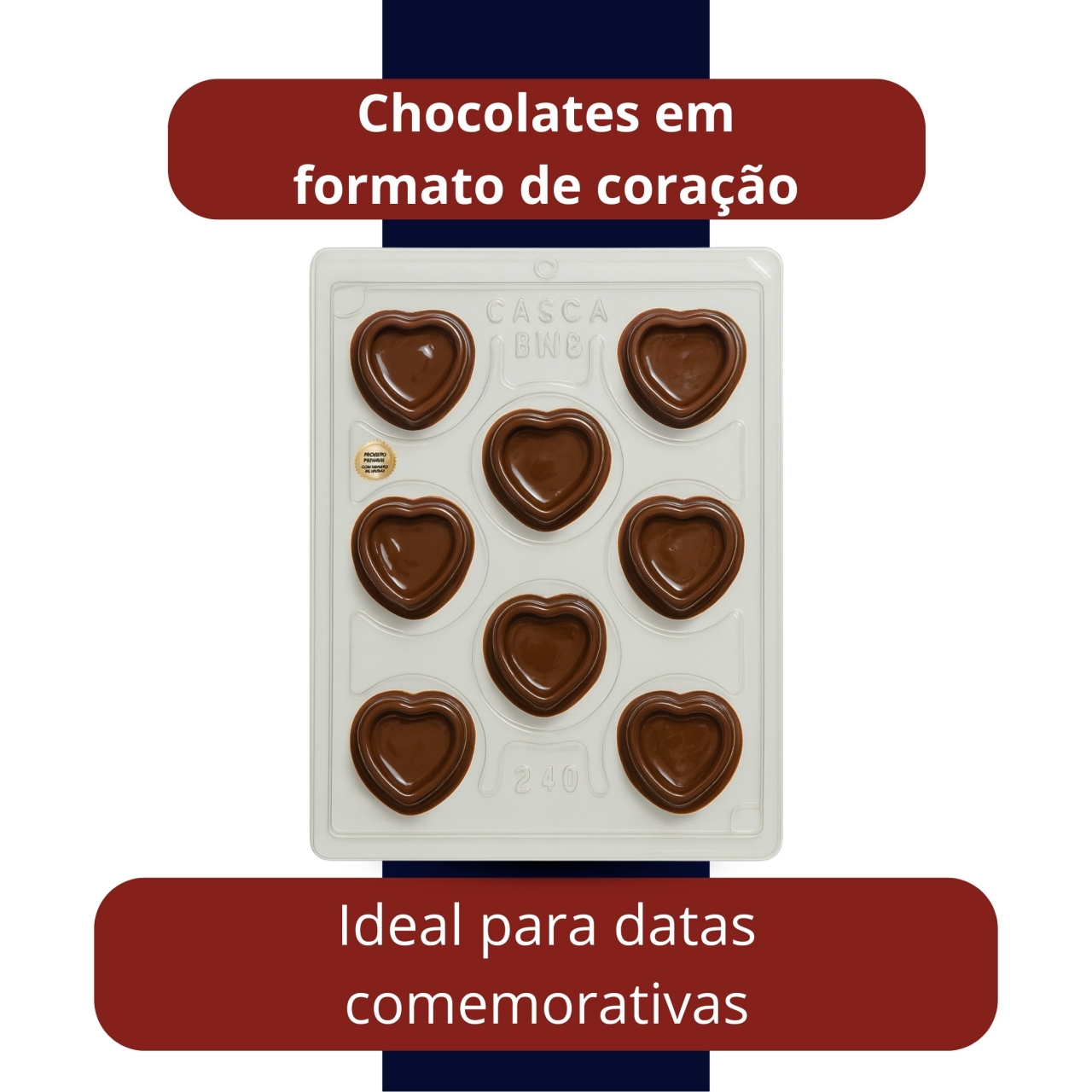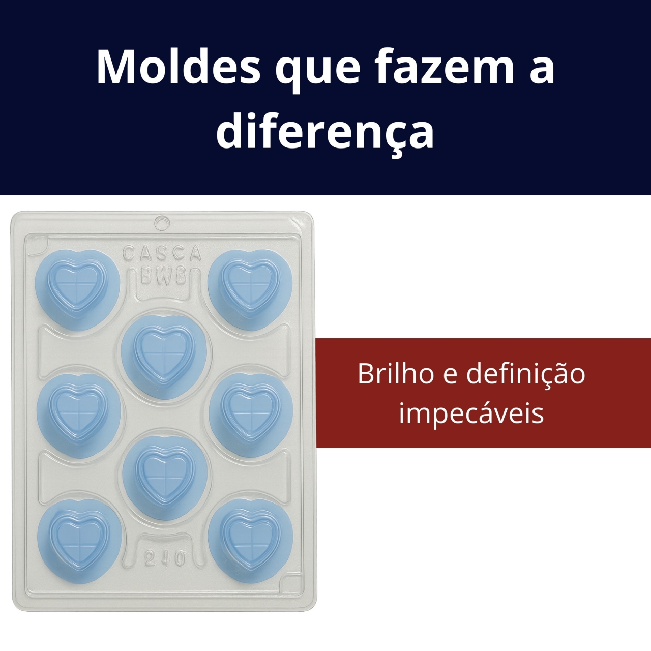 forma de acetato com silicone coração, molde para bombons bwb ref 240, forma para trufas profissionais, molde reutilizável para chocolate, forma bwb coração para confeitaria, forma rígida com silicone removível, molde para doces em formato coração