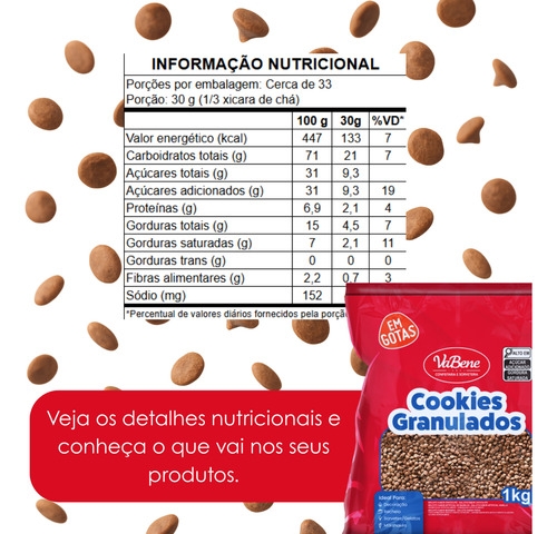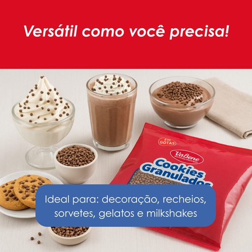 Formato exclusivo em gotas, textura crocante e visual moderno: os Cookies Granulados em Gotas VaBene oferecem acabamento profissional e alto rendimento para confeitarias, docerias e produções artesanais. Pronto para uso, com resistência térmica e aplicação versátil.